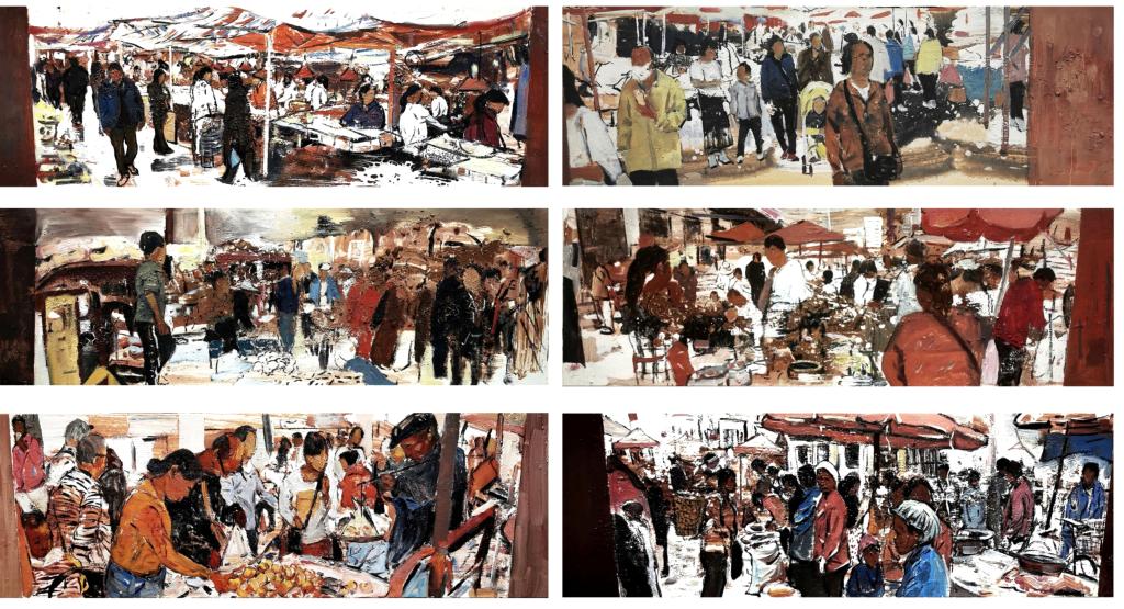 在师生创作与竞赛领域,学院师生佳作频出、屡获殊荣。赵世峰老师凭借深厚的艺术造诣斩获多项重磅奖项:2025年10月,其作品荣获中共甘肃省委、甘肃省人民政府颁发的“甘肃省第十一届敦煌文艺奖特别奖”,同期书法作品入展中华人民共和国文化和旅游部主办的全国第十四届艺术节优秀书法篆刻作品展;此外,其作品还先后入选新疆维吾尔自治区文旅厅“典籍里的新疆”诗书诵西域作品展、甘肃省政协书画院“黄河之滨也很美”书画作品展,并参与甘肃省书法家协会“书画作品进农家”暨“乡村艺术馆”建设活动,实现了艺术创作与社会服务的有机融合。苏丽霞老师作品《丝路寻迹——仰望与守护》入选第二届壁画展,展现了扎实的创作功底。郭晋钰老师更是佳作频出、成绩亮眼:2025年,其油画《吉木萨尔-牛羊同心》入选中国美术家协会主办的“情系塔里木”美术作品展;油画《秦州故市》入选中国油画学会、甘肃省文旅厅、甘肃省文联联合主办的“大路西行”全国油画作品展;油画《天水坚家河集市2》入围文化和旅游部、中国文联、中国美术家协会联合主办的第十四届艺术节相关展览;油画《秦州古市1》入围中国美术家协会主办的“精神图示”中国油画作品展;油画《天府早市·晨光》入选中国美术家协会主办的“天府”全国油画作品展,其作品还在“大漠西行”展览中荣获提名奖,全方位展现了学院教师多元且深厚的创作实力。