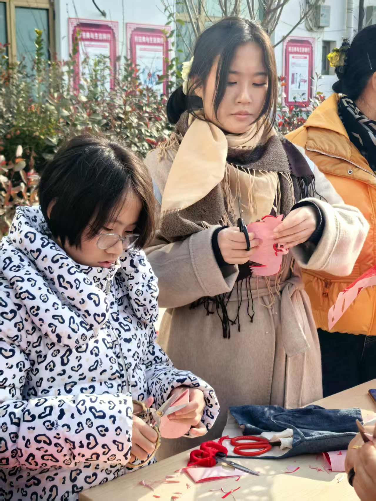 大年初三至初四,年味正浓,党支部再度组织秦风里工坊在秦州区山水嘉园小区、佳水岸小镇,开展 “党建暖心・非遗过年” 活动。不同于乡村的现场展示、集中派送,社区活动中,大家围坐在一起,由工坊成员指导居民折叠、勾勒、裁剪。“先把红纸对折三次,边角要对齐,剪的时候要慢,别剪断轮廓线”,工坊的非遗小苗子一边示范,一边像个小老师一样讲解,认真的模样引得大家纷纷点赞。